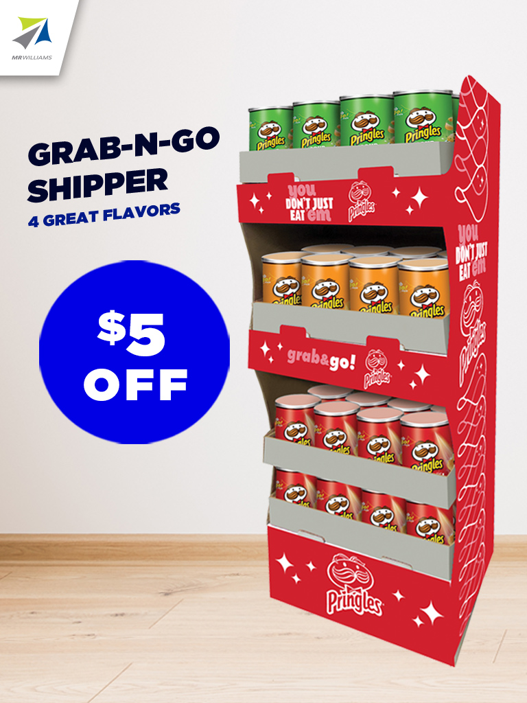 Introducing the Pringles Grab & Go Shipper, your ultimate on-the-move snacking solution. Packed with everyone’s favorite stackable crisps, it delivers bold flavor and unbeatable convenience in every perfectly portable tube. Its eye-catching display makes it easy to grab your go-to Pringles right when the craving hits. Whether it’s for road trips, lunch boxes, or quick breaks, this shipper keeps snack time effortless and delicious. Stock up, grab one, and enjoy that iconic Pringles crunch anywhere you go.